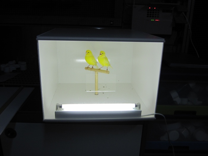 Aujourd'hui, vu que je voulais bricoler, j'ai confectionné une cage photos en Forex de 5mm d'épaisseur. Elle est pourvue d'un néon de 8 Watts pour oiseaux de la marque Acardia, et d'un perchoir tournant à 360°. Elle fait 40 x 40 x 30 cm. Bonne soirée, Cédric