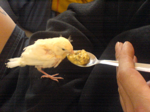 jamais, je ne pensais être obligée de donner la becquée à un oisillon, mais bon, s'il faut aider la mère... on en apprend tous les jours, je n'ai qu'une seule crainte c'est que la mère l'abandonne complètement, elle lui donner à manger mais pas correctement.