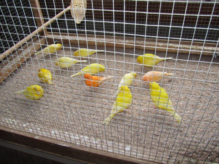 Ce canaris a été coloré (pâtée + addition de colorant). Penser pouvoir colorer avec uniquement de la pâtée rouge dont le taux de colorant est infinitésimal ne donnera rien de bon ! Les oiseaux seront peu ou pas colorés. Une pâtée jaune teintée avec du sirop de grenadine aura les mêmes effets. De même que tenter de colorer des oiseaux après la mue ne servira pas à grand-chose sauf si vous faites des concours. Dans ce cas, la poursuite de la coloration est indispensable afin que toute plume perdue entre temps, puisse repousser avec la bonne coloration. |
