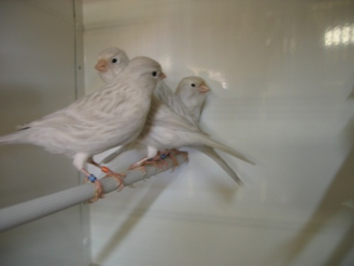 Voici des photos de mes reproducteurs pour l'année prochaine. Les photos ont été prises avec ma cage photo Femelles blanc récessif ![]() ![]() Mâles blanc récessif (il y a 2X de même) ![]() ![]() ![]() Couple de blanc récessif en réserve ![]() Femelle mosaïque jaune (la mue n'est pas encore finie) Son mâle (et père)