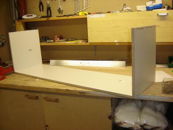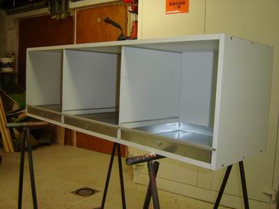 Prendre les 2 cotés,tracer un trait de 8mm (une demi fois l'épaisseur du bois) du bord et faites une marque (pour le percage) au milieu et a 4 cm de chaque éxtrémité. (Mèche de 3mm vis a bois 4x40) Assemblage des cotés et de haut Placer les tiroirs et les separations que vous aller fixer par le dessous de la meme maniere que précédement. Découpage et mise en place des grilles en alu (pour les séparations) par collage et faire de meme pour les guides du haut. Mise en place des séparations + plateaux pour vérification (au cas ou !) Pose d'un joint silicone et mise en place du fond par clouage Pose d'un chant adhésif pour coller sur la tranche des séparations Découpe du rail en alu qui va soutenir la grille Mise en place du rail avec les tiroirs et une cale de 2 mm pour un petit espace de coulissement Placer la grille et faites les trous sur le haut Pose des trois rail en alu + mise en place des tiroirs Mise en place des séparations Mise en place d'une seul grille en attendant les autres qui sont en commande Si vous avez bien suivi,il suffit de pousser la grille vers le haut et de la tirer vers vous pour l'enlever et tout nettoyer plus facilement !!! Dernière modification par apdcanari ; 04/02/2006 à 23h37. |