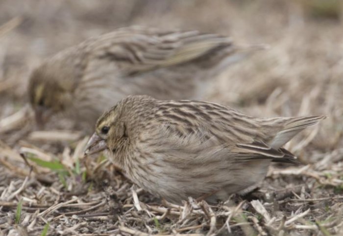 Illustration et cliché d'un mâle d'Euplecte ignicolore. Ces oiseaux s'établissent surtout dans les régions marécageuses et dans les herbages le long de l'eau. Lorsque les céréales mûrissent, ils forment de grandes volées en compagnie d'autres Tisserins, et font des invasions dans les champs, où ils font d'énormes dégâts. Pendant le restant de l'année, ils se nourrissent pourtant des semences de mauvaises herbes et de graminacées. Ils passent la nuit dans les immenses jonchaies. Quoique ces oiseaux nichent en colonie, les mâles qui sont polygames, possèdent plusieurs femelles, construisent leurs nids dans un territoire qui leur est propre, ces nids en forme de bourse sont bâtis parmi les hauts roseaux au moyen de tiges d'herbe verte, dont les plumules sortent des parois extérieures. Les nids sont de construction solide, mais les parois en sont très minces et laissent voir les œufs bleu clair. Ces trois clichés nous montrent la femelle Euplecte ignicolore aux aguets et se nourrissant sur le sol. L'entrée qui se trouve sur le côté, est protégé par un auvent attaché à un jonc sur une longueur d'une vingtaine de centimètres, ce qui rend la construction plus stable. Cette espèce a été importée depuis des temps lointains, ils sont parmi les "Tisserins" les plus infatigables, et s'ils sont logés en grande volière, ils n'incommodent pas leurs cohabitants, sauf en période de reproduction, lorsque les mâles sont extrêmement nerveux. Un mâle et plusieurs femelles qui seraient logés en grande volière plantée de buissons et de roseaux, construira des nids, et ses femelles pourront pondre et couver. Ces oiseaux, comme dit auparavant, préfèrent l'herbe verte comme matériau de construction L'incubation prend quatorze jours, les jeunes prennent l'envol à l'âge de trois semaines et sont alors semblables à la femelle. Souvent cette dernière élève deux nichées par saison, les mâles n'acquièrent le plumage de noce que dans la troisième année et sont alors seulement à ce moment là, capable de féconder. En plus du mélange de graines pour petits exotiques, ils devront disposer d'avoine et de blé, en période de reproduction les suppléments d'asticots et de vers de farine vivants indispensables. Ces oiseaux peuvent passer l'hiver en volière extérieure, mais il faut que l'abri soit confortable et bien calfeutré et qu'il n'y gèle pas. m@loute45.