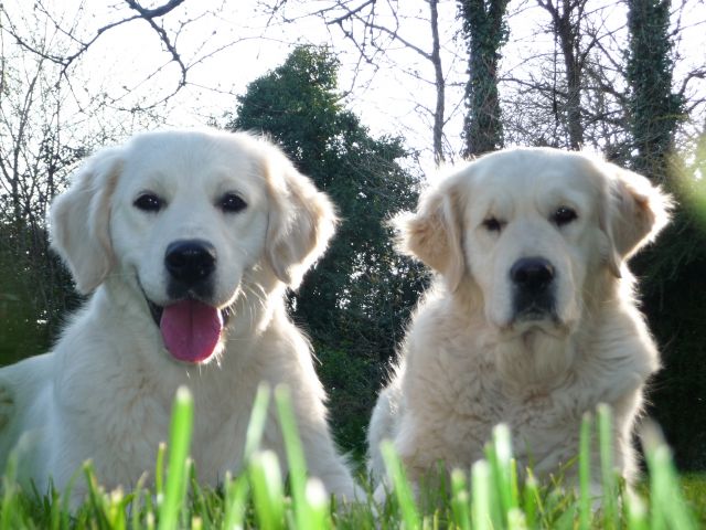 Je possède deux golden retriever femelle 4 ans et 9 mois et ce n'est pas fini, normalement l'année prochaine peut être un pti malou, et donc 2 canaris, je vis chez ma mère alors ya en tout trois chiennes, les deux miennes plus une petite coton de tuléar,d'1an. Une Trentaine de poulets et poules et d'une vingtaine de poissons rouges dans un bassin à l'extérieur. oui j'oubliais je garde un labrador sable de 11 ans