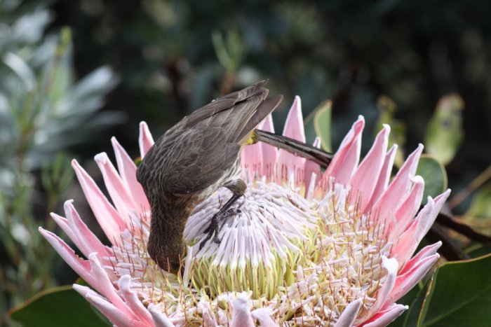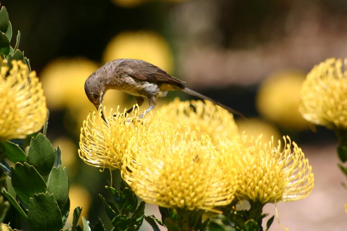 Nom : Sugarbird_on_yellow_pincushion_(Leucospermum)_(2915074974).jpg