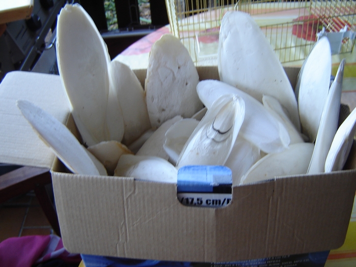 voila comment j'ai préparer mes os de seiche ,ce carton me fera pas mal de temps jusqu'à mon prochain voyage sur les plages de Normandie!!