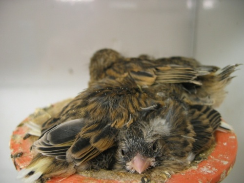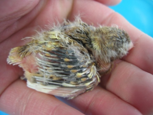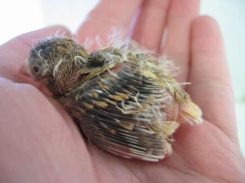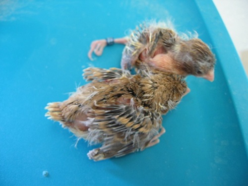 Jeune femelle corona cinnamon à peine sortie du nid.
