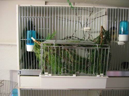 En captivité, il est possible de lui donner un mélange pour indigènes, des grappes de millets et également de la verdure et toutes les graines des plantes sauvages, tels que le pissenlit, le chiendent, la reine des près, le chardon, la salade, etc… sans oublier les fruits et légumes. Des graines germées compléteront son menu, tout comme de la pâtée à l'oeuf. Un os de sèche et du gris sera toujours présent dans la volière pour éviter un manque de calcium. Au moment de la naissance des jeunes, il est conseillé de donner de la nourriture vivante aux parents, tels que des vers de farine, teignes de ruches, chenilles, pucerons, etc…